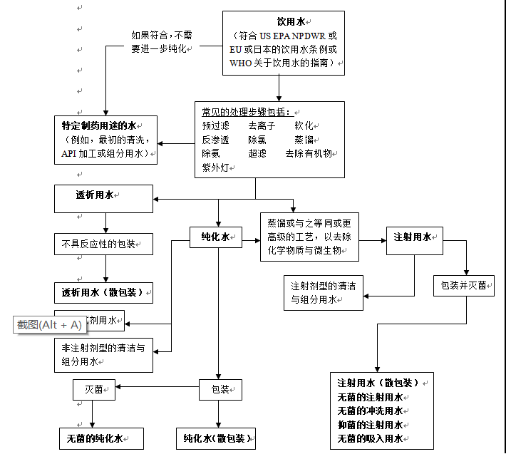 接下来的内容是对不同类型制药用水的一个简短的描述以及制药用水的重要作用或用途。图1可能会有助于理解某些类型的水。